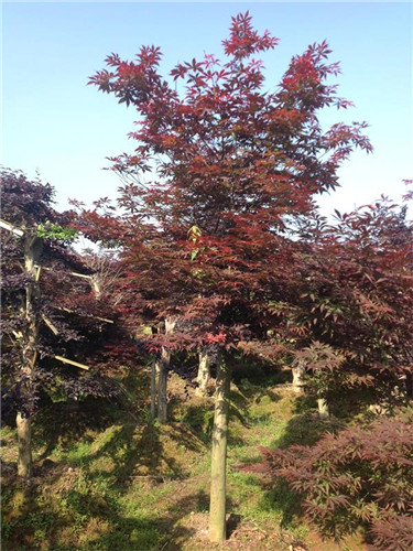 紅楓是一種非常美麗的觀葉樹種,其葉形優(yōu)美,紅色鮮艷持久,枝序整齊,層次分明,錯(cuò)落有致,樹姿美觀。廣泛用于園林綠地及庭院做觀賞樹,以孤植、散植為主,宜布置在草坪中央,高大建筑物前后、角隅等地,紅葉綠樹相映成趣。它也可盆栽做成露根、倚石、懸崖、枯干等形狀,風(fēng)雅別致。