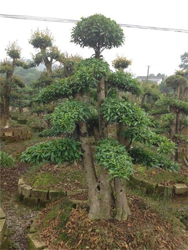 杜英造型產(chǎn)品主要類型有:古樁造型、雙桿造型、單桿造型、盆景造型、柱形、球形等。